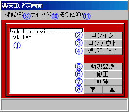 - 楽天のIDを最大100個まで管理できます。